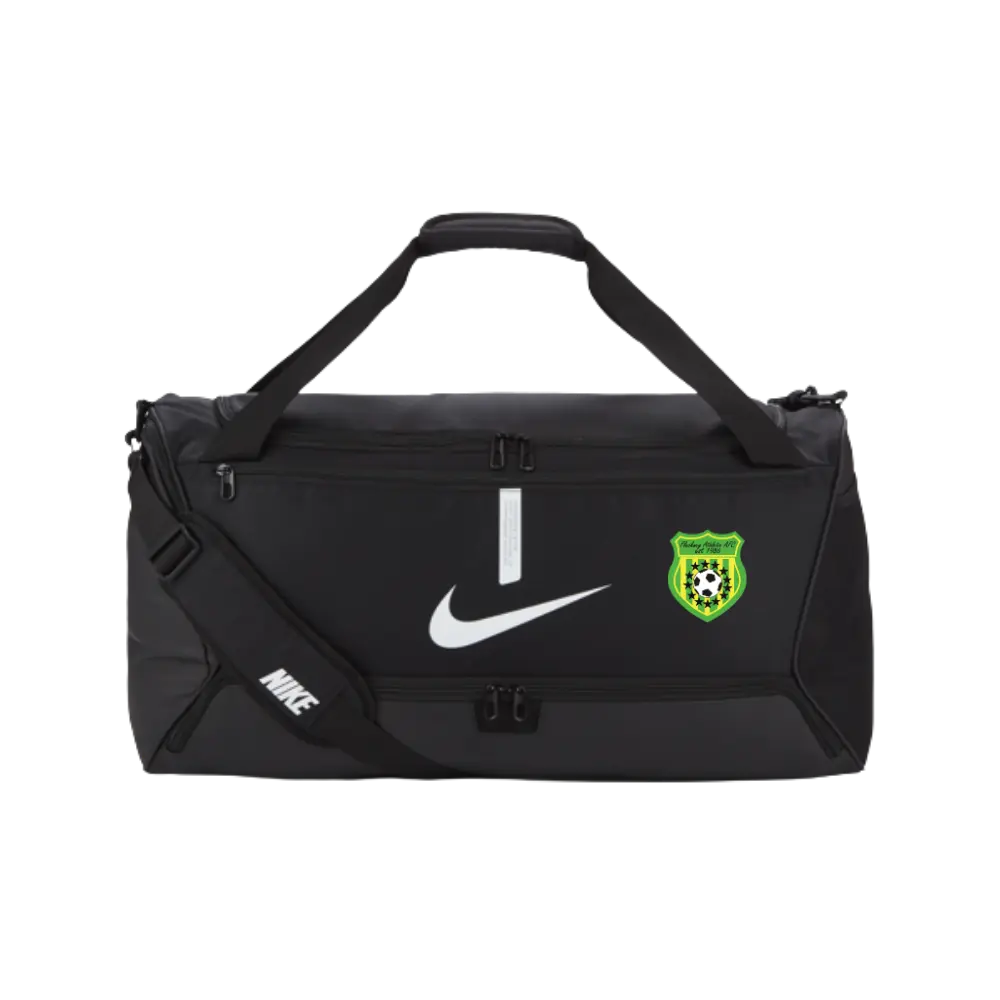 The Nike Academy Team Duffel Bag is the official Fleckney Athletic FC kit bag. Spacious and practical for carrying your kit and accessories, it’s ideal for training, matchdays, and travel and is supplied with the official Fleckney Athletic FC club crest.